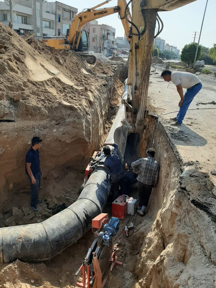 نحوه اجرا: در مناطق شهری شمال تا جنوب بوشهر، با استفاده از حفاری دستی، مکانیکی و پاژکینگ (Pipe Jacking)